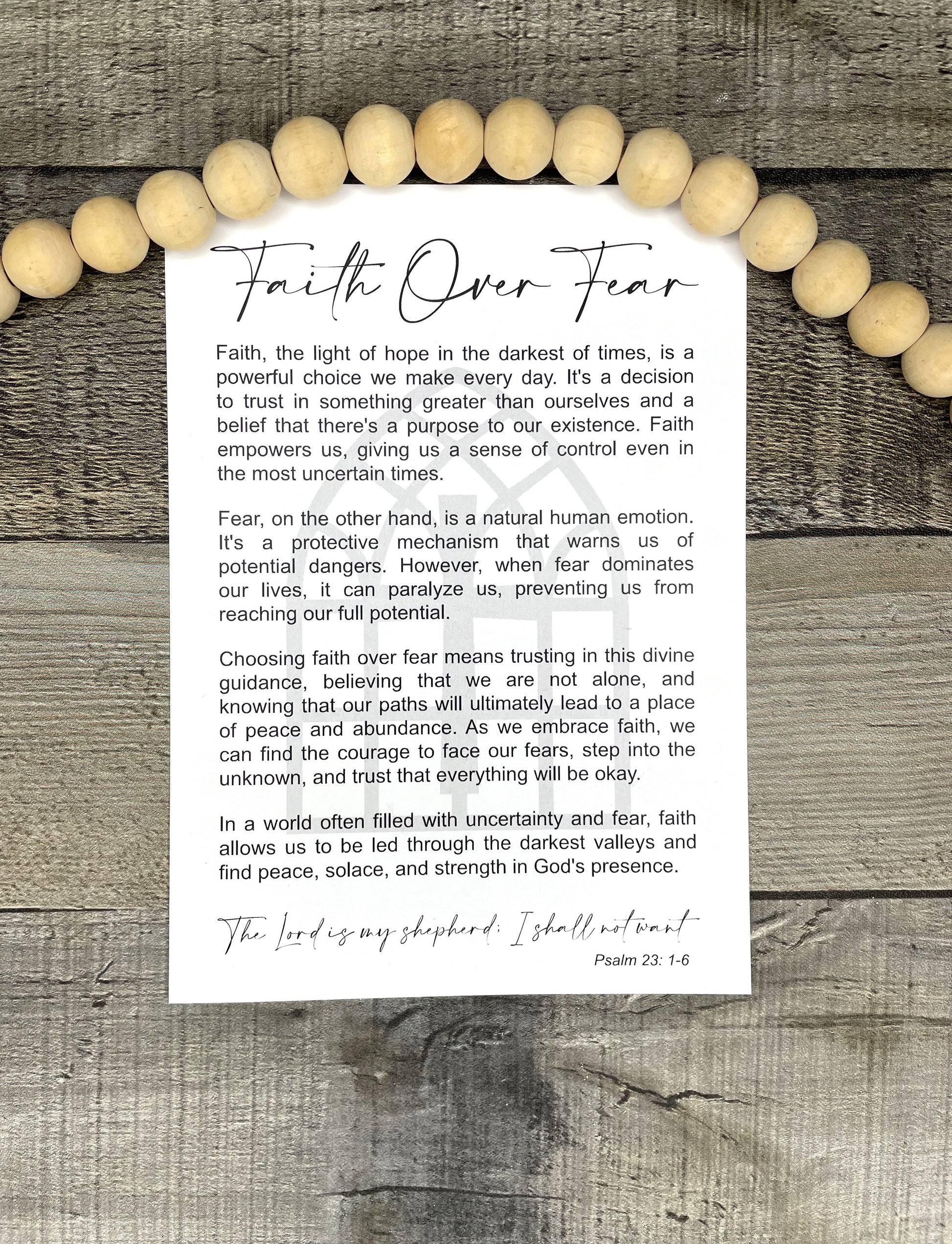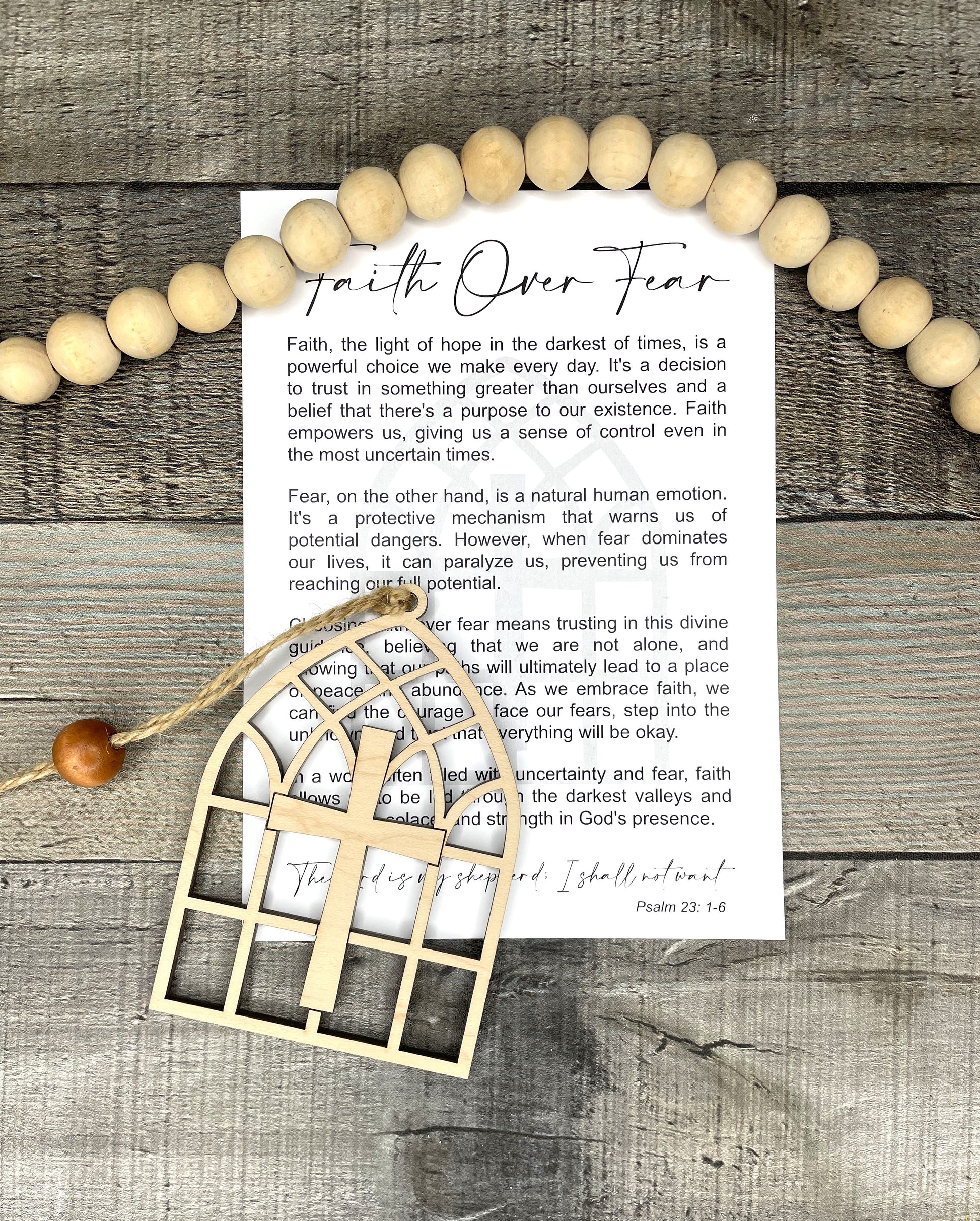 Each piece includes a printed "Faith Over Fear" card, offering an uplifting message about choosing faith over fear, inspired by Psalm 23:1-6. Whether given as a meaningful gift or kept as a personal reminder, this ornament serves as an encouragement to trust in faith during life's challenges.