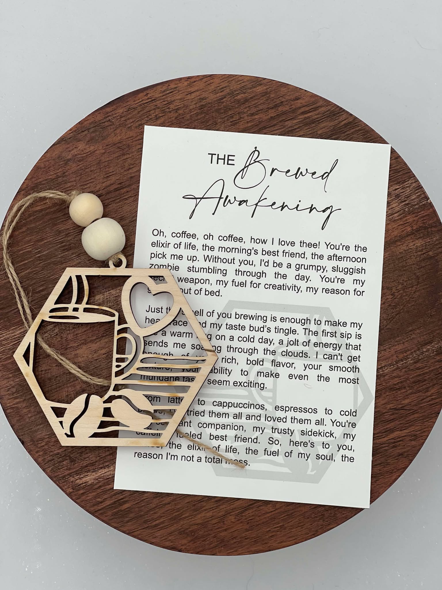The Brewed Awakening - Wooden Coffee-Themed Ornament